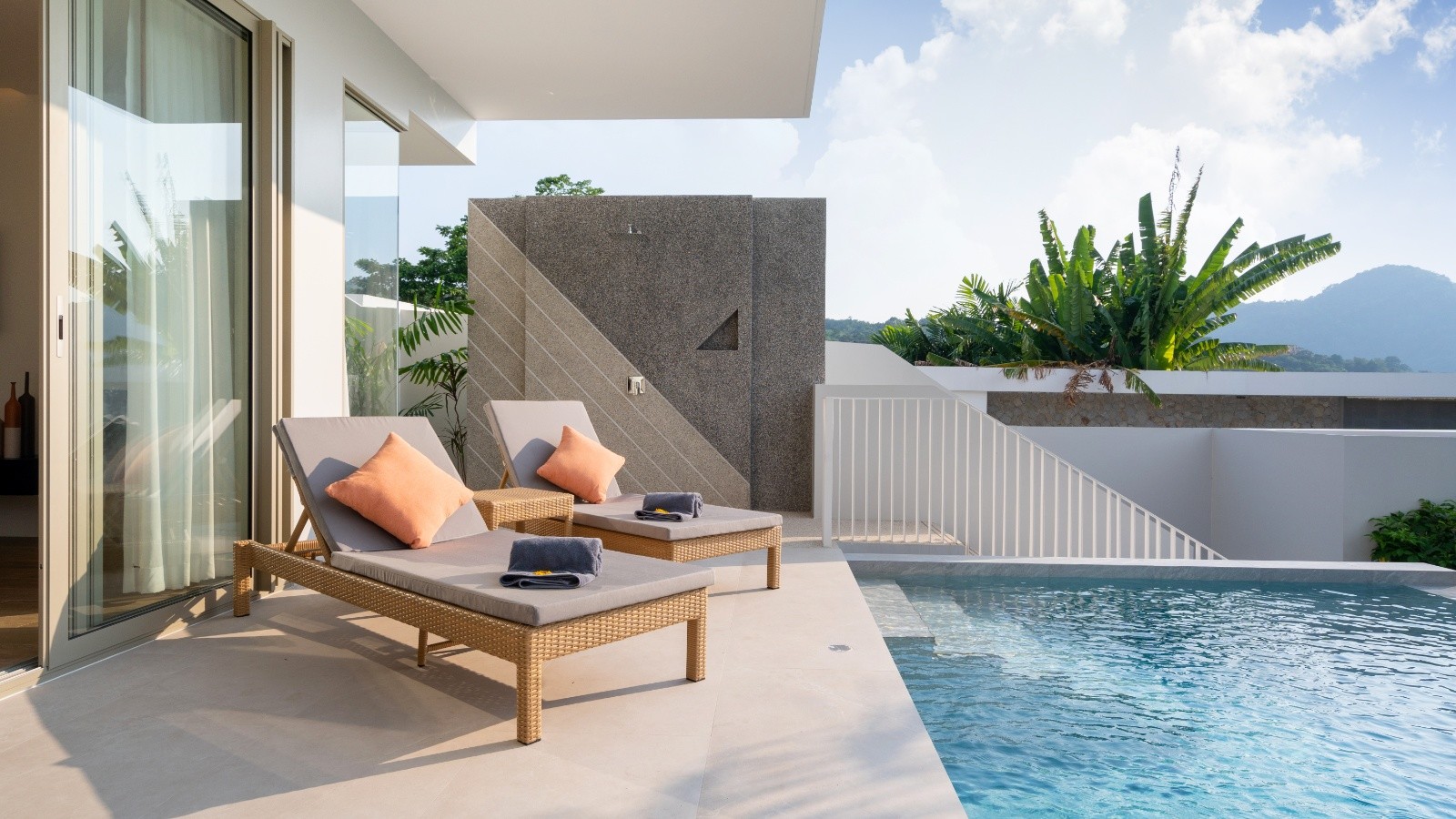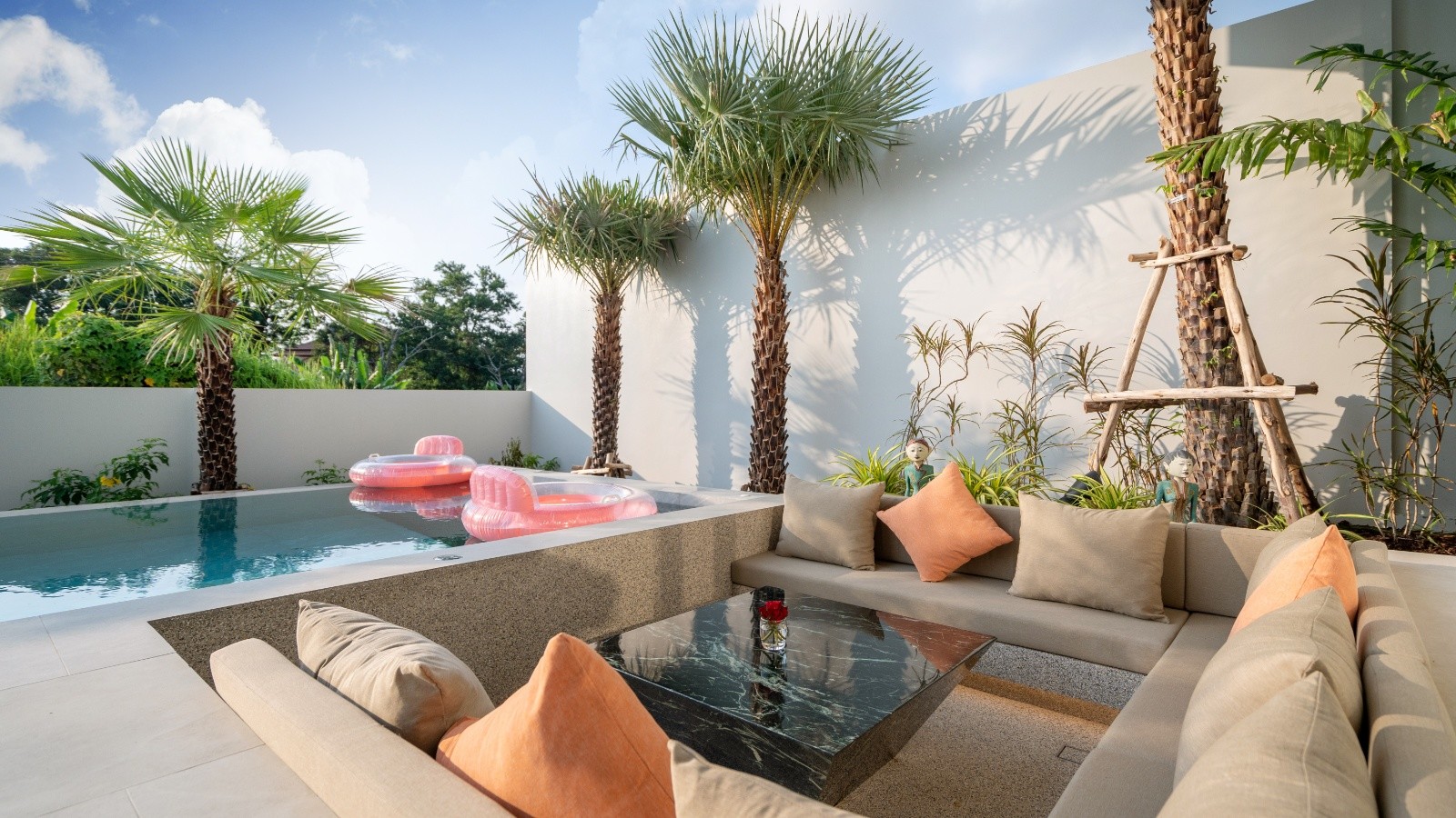 走出陽光,在 Villa 發現您的私人花園天堂。這裡是享受普吉陽光的絕佳場所,你可以在躺椅上放鬆,或與旅伴們在聊天區品嘗自製雞尾酒。這片物業真正的亮點是無限泳池,午後陽光下閃耀著晶瑩剔透的藍色。若想獲得更私密的體驗,可以選擇一樓露臺,這裡設有舒適的戶外生活區,並可欣賞卡馬拉山脈的田園詩般景色。