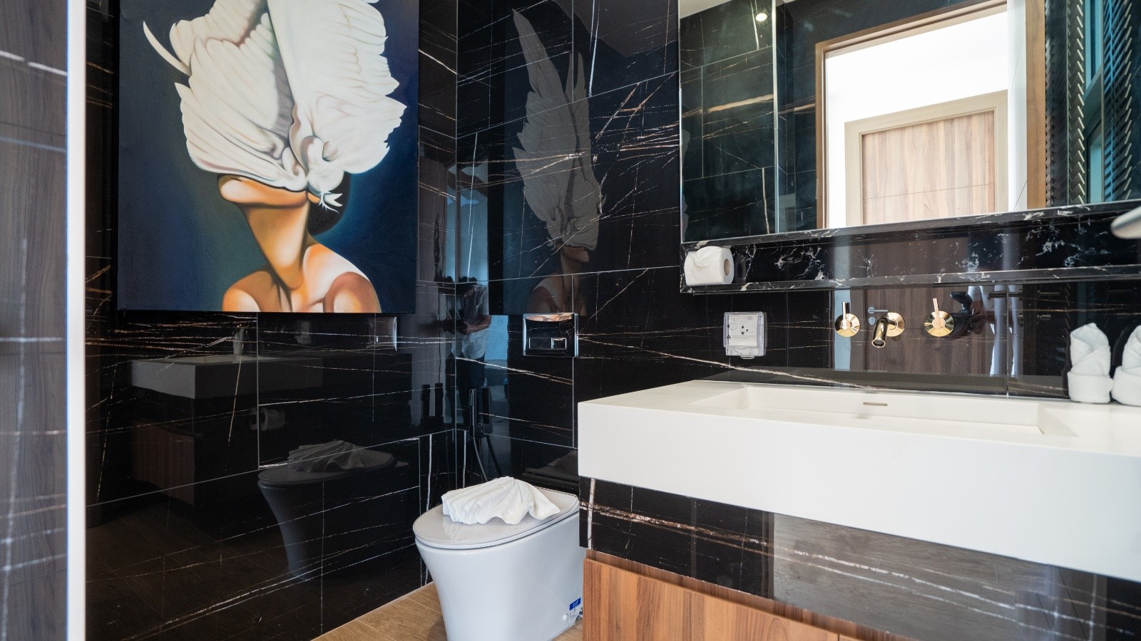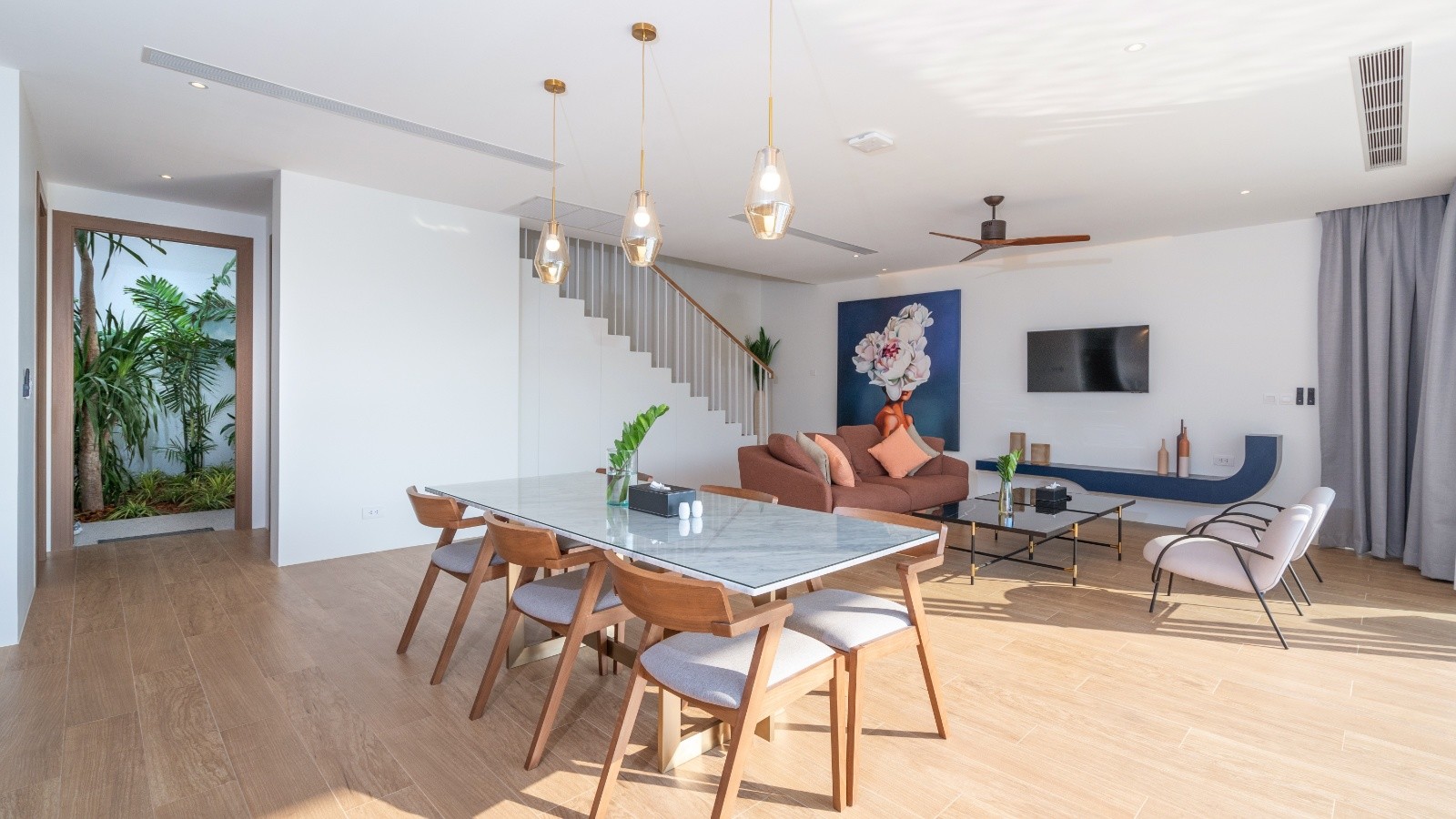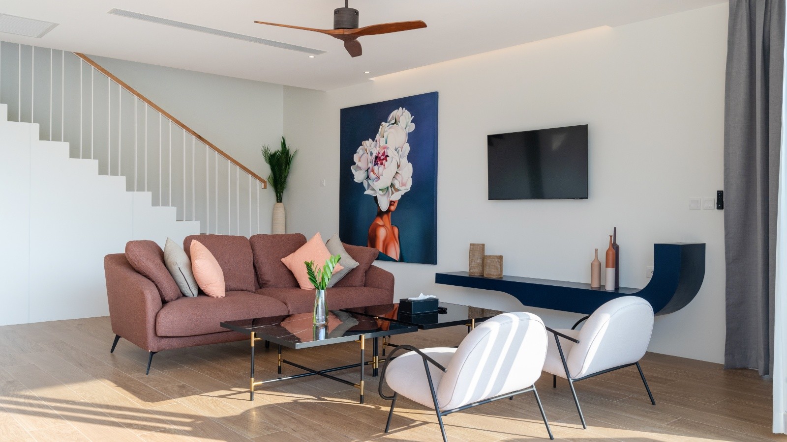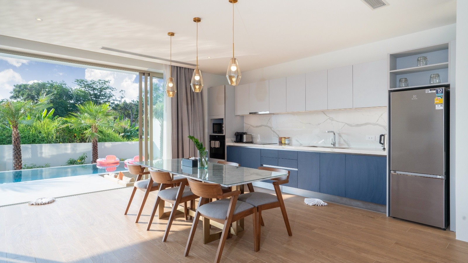 就像臥室一樣,Villa 的室內裝潢彷彿剛從設計雜誌的頁面走出來。這棟房子採用令人驚豔的現代時尚風格設計,巧妙融合當代極簡主義與傳統泰式美學。主廳是一個開放式客廳、廚房和餐廳區,透過落地窗灑入明亮的自然光。在客廳放鬆時,享受冷氣浴,同時用智慧電視看電影。在空間的另一端,泰國料理愛好者會很高興聽到您設備齊全的廚房配備了最新設備和設施,讓您能用市場正宗食材烹調當地料理。這些食物可以圍繞六人餐桌供應,讓家庭用餐成為一天中的真正亮點。