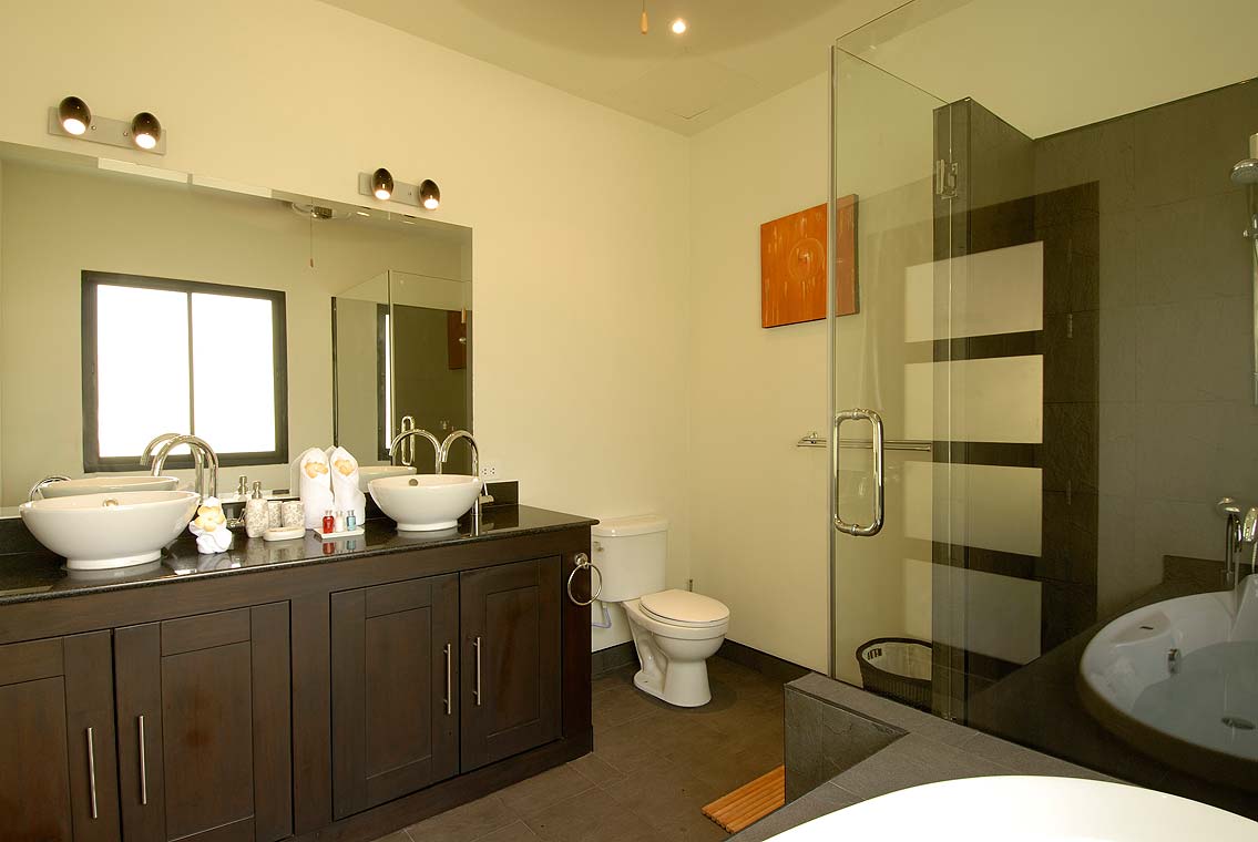 四房最多可容納8人,若有需要,還可額外加一張摺疊床。主臥室套房寬敞,配備一張特大號床、內建衣櫃,以及一個大型步入式浴室,浴室內有浴缸和步入式淋浴間。滑動雙門通往泳池邊和日光甲板。臥室2還有一張特大號床,內建衣櫃,並可通往日光甲板和泳池邊。臥室2和3共用一間寬敞的家庭浴室,配有浴缸和步入式淋浴間。內建衣櫃能安全地存放您的物品。臥室3是年輕客人的完美選擇,因為有兩張單人床和一台42吋平面電視。你還會找到一系列玩具、桌遊和故事書,適合喜愛文學的孩子。第四間臥室內建衣櫃、套房浴室,並設有上下舖床,非常適合小朋友使用。所有臥室都擁有高度風格化的裝潢與空調,營造完美且充滿活力的假期體驗。
