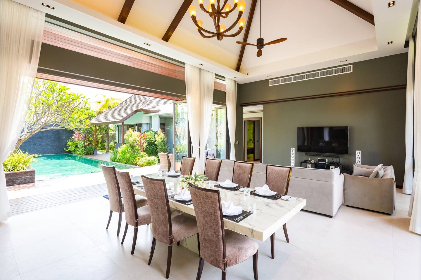 4間臥室的泳池別墅,配有獨立浴室、2間獨立廚房。提供4個停車位。距離拉古納和船舶大道5分鐘車程。