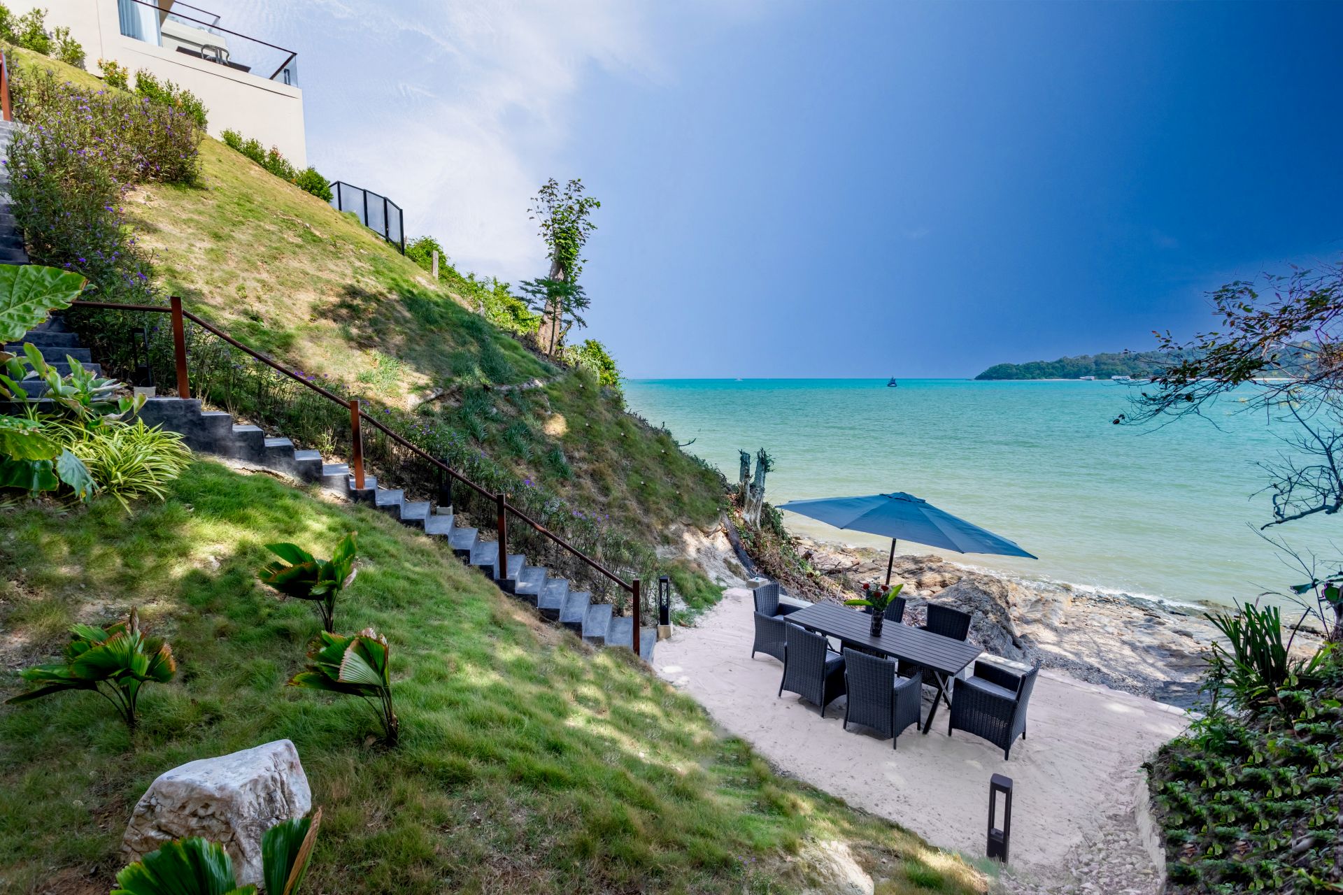 別墅展現出一個寧靜的避風港。別墅的設計巧妙結合現代優雅與茂密綠意,處處都能欣賞到令人屏息的海景。從室內外生活空間無縫融合,到寧靜的氛圍,尤金妮亞別墅為尋求放鬆與享受的賓客提供了無與倫比的避風港。