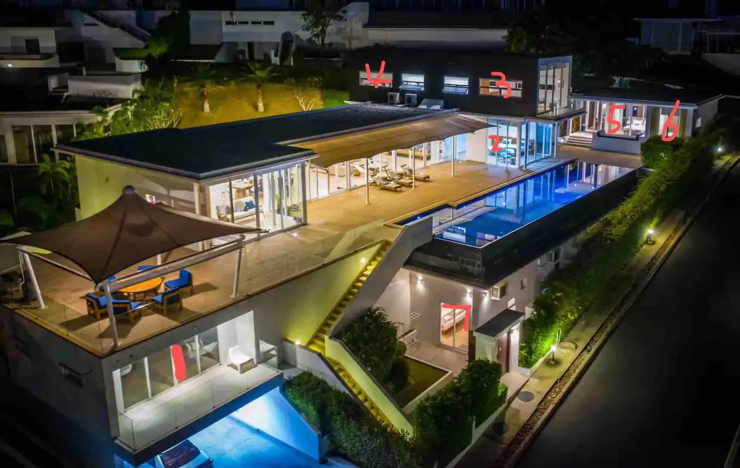 別墅佔地1500平方米,300平方米的客廳,300平方米大露台包括早餐區和燒烤區,300平方米的看海花園,25米的無邊泳池以及臥室全部直接俯視安達曼海。