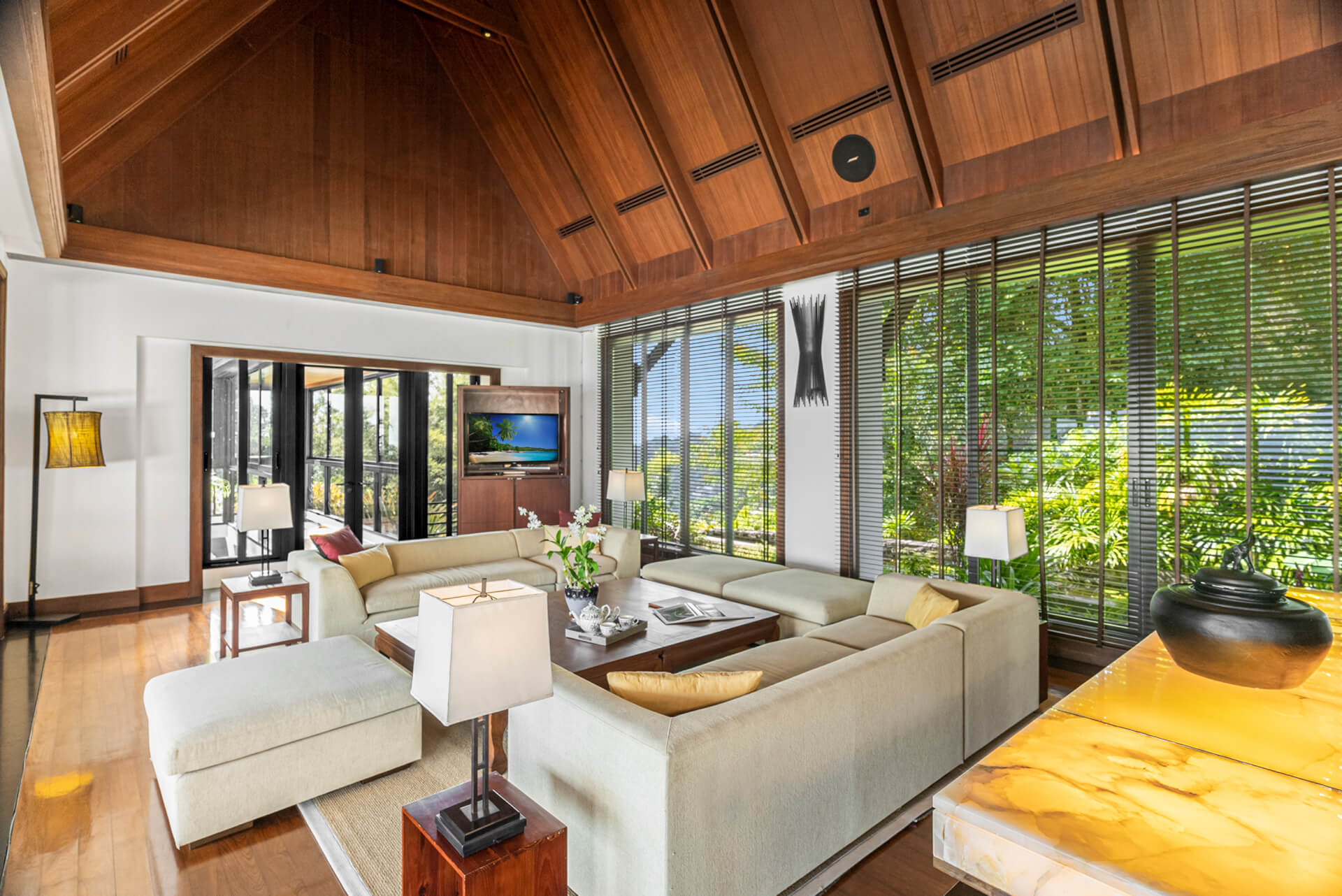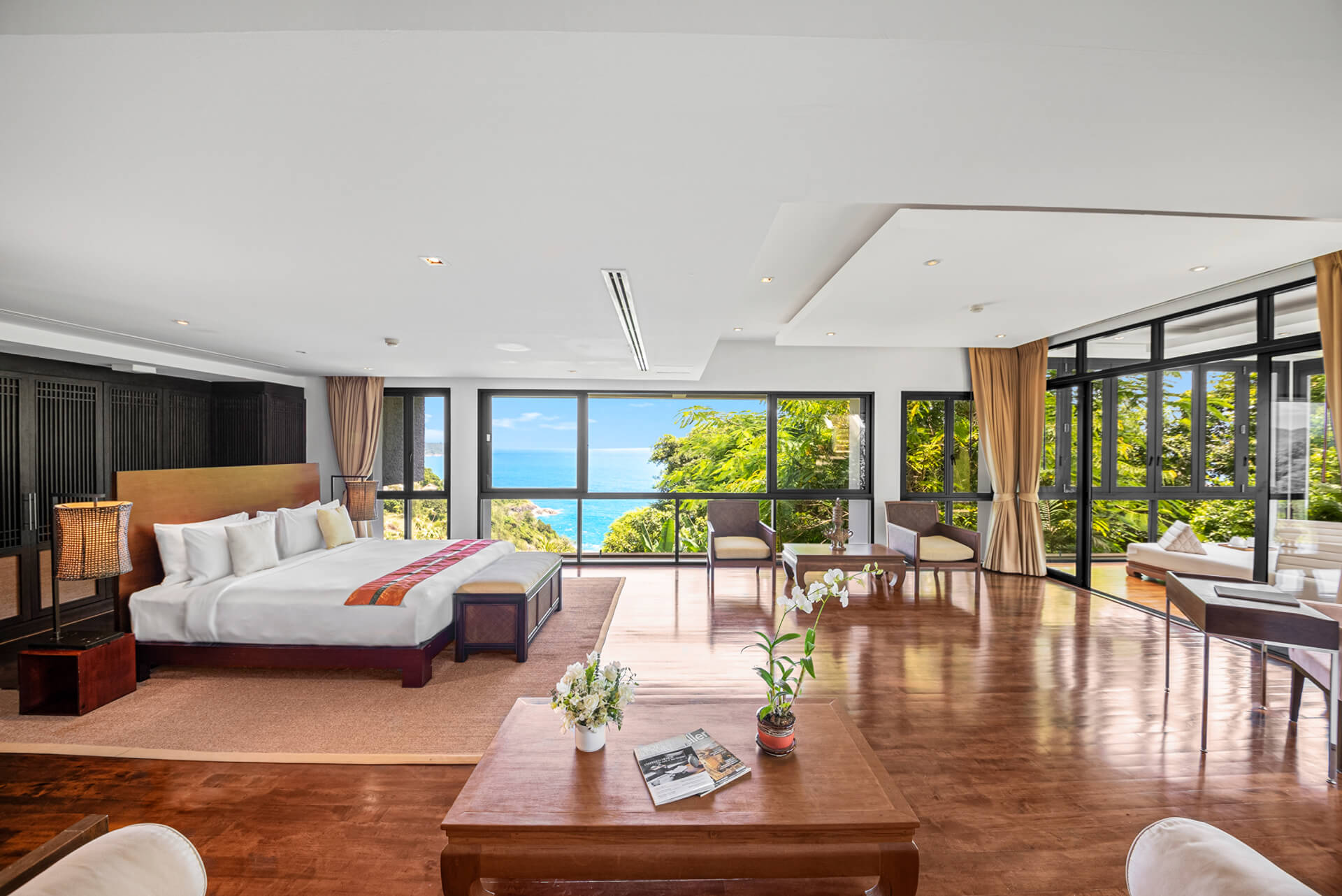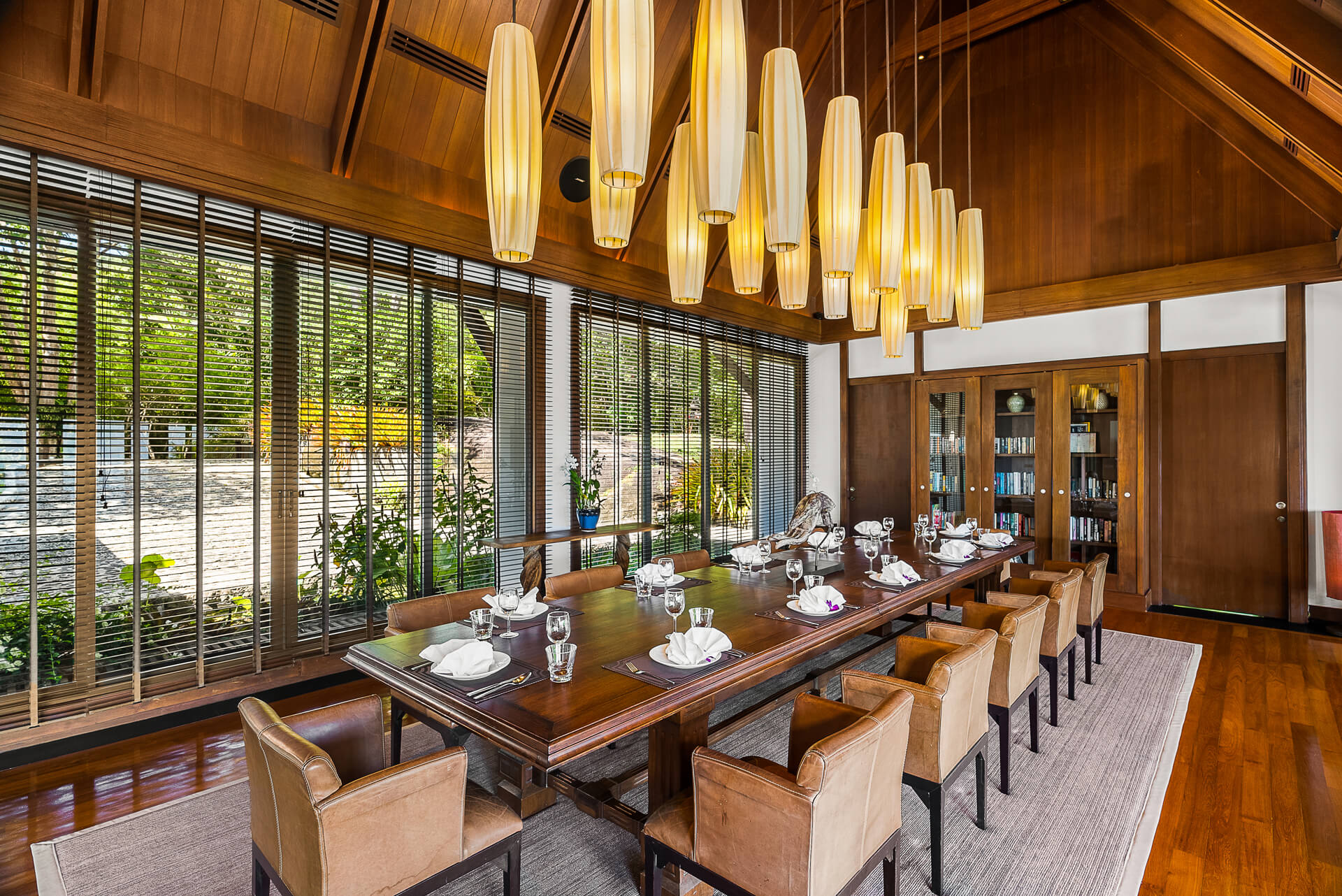 Villa 的室內設計由當地知名建築師負責,別墅內充滿了傳統泰國元素。由於家庭用餐是泰國重要的時刻之一,這裡有兩張餐桌可供選擇。你可以選擇一張1人座的日式餐桌,或是配有豪華皮椅的豪華14人餐桌。你可以前往媒體室,利用大型平面電視觀看電影,並透過 CTH Beaming 直播英超足球賽事。孩子們可以前往娛樂室,或在大型柚木咖啡桌旁進行有意義的對話。還有一個大理石吧台,可以和整個團體一起享用下午調酒。
