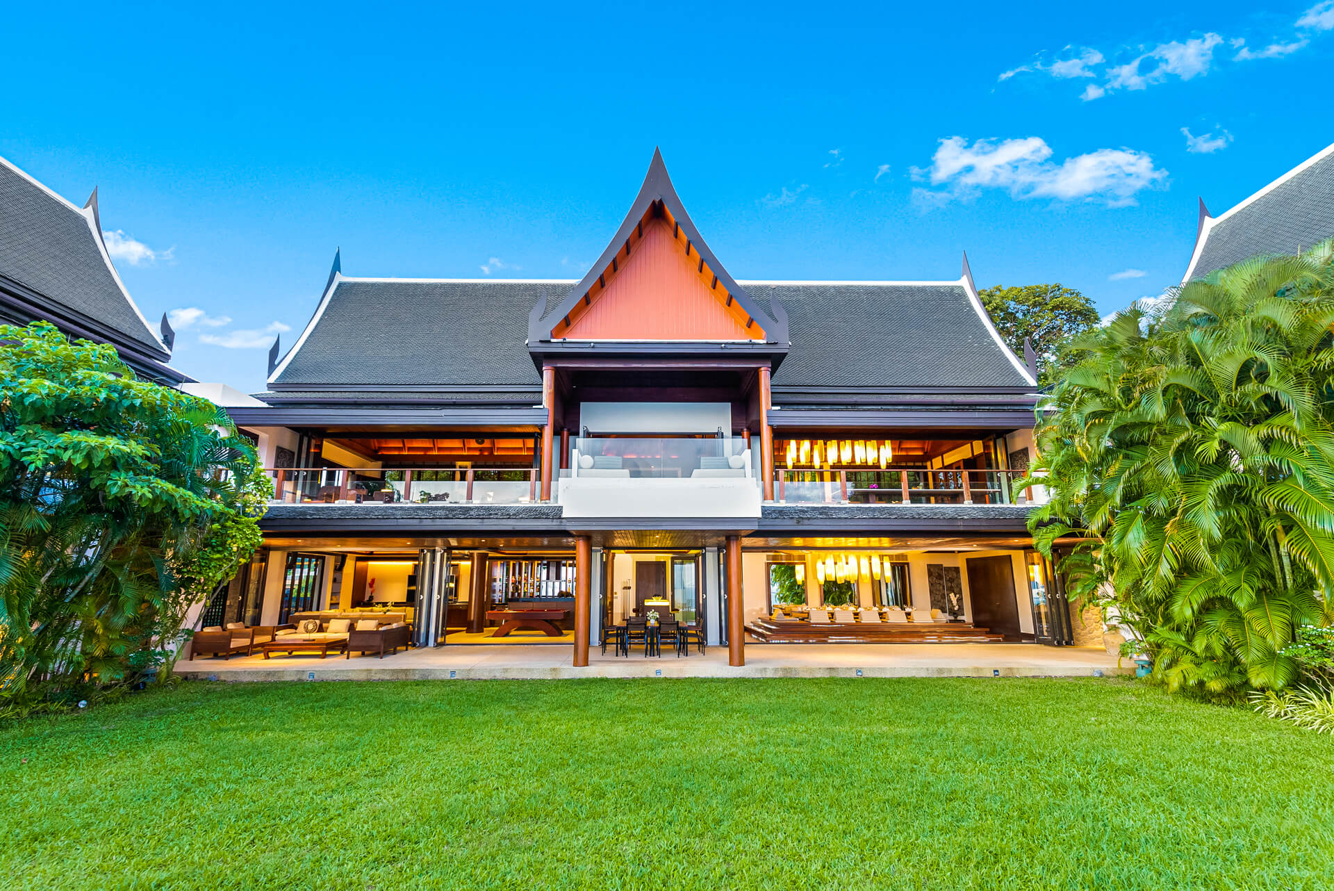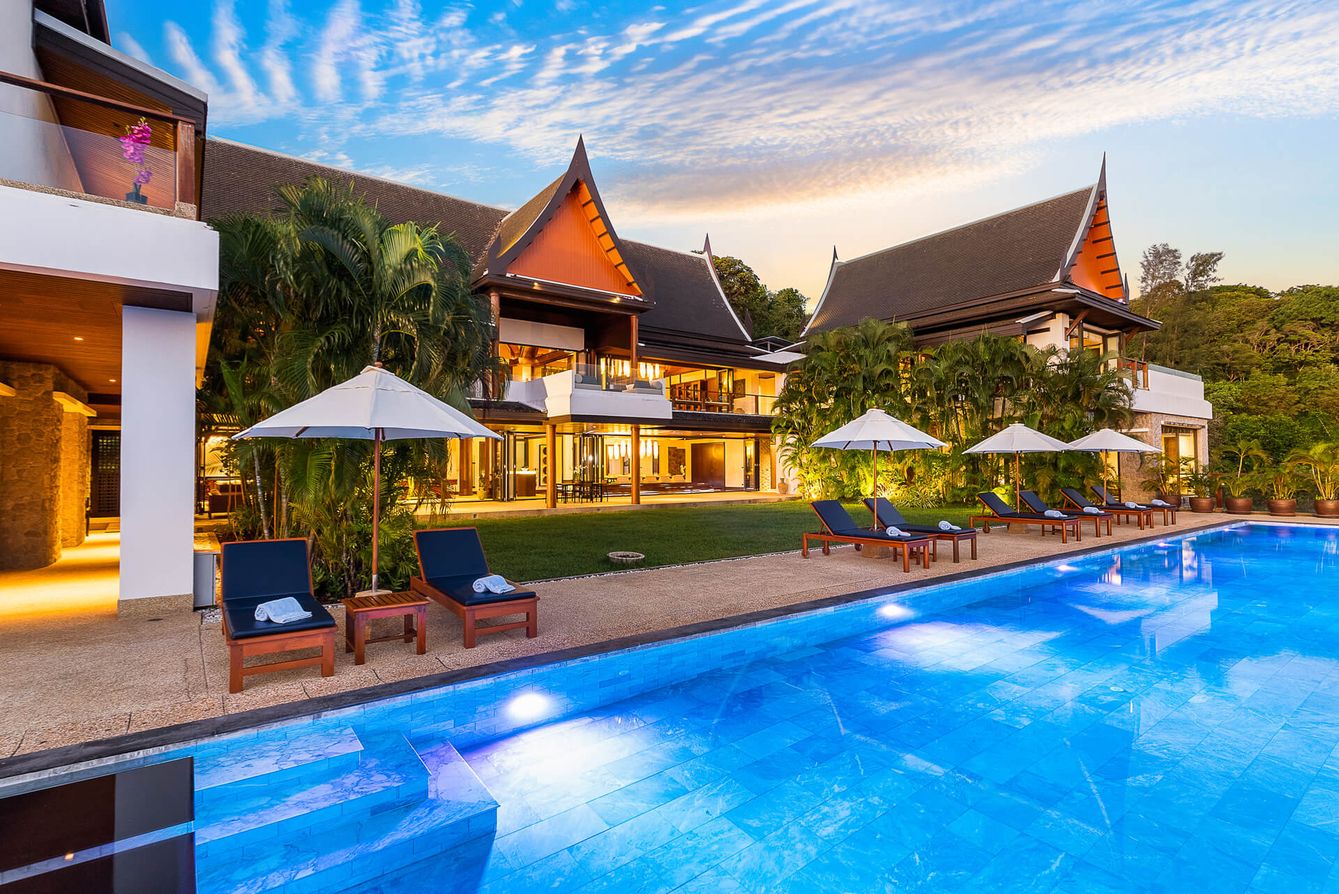 Villa 的特別之處在於它擁有一塊可容納 100 位賓客的草坪。 如果你不舉辦活動,可以在私人無限泳池游泳,欣賞無阻擋的壯麗海景。泳池周圍設有休息區和日光椅,您可以在泰國熱帶陽光下曬太陽,享受自然曬黑。此外,還有躺椅和日光傘,供想保持乾燥並在陽光下閱讀小說的賓客使用。