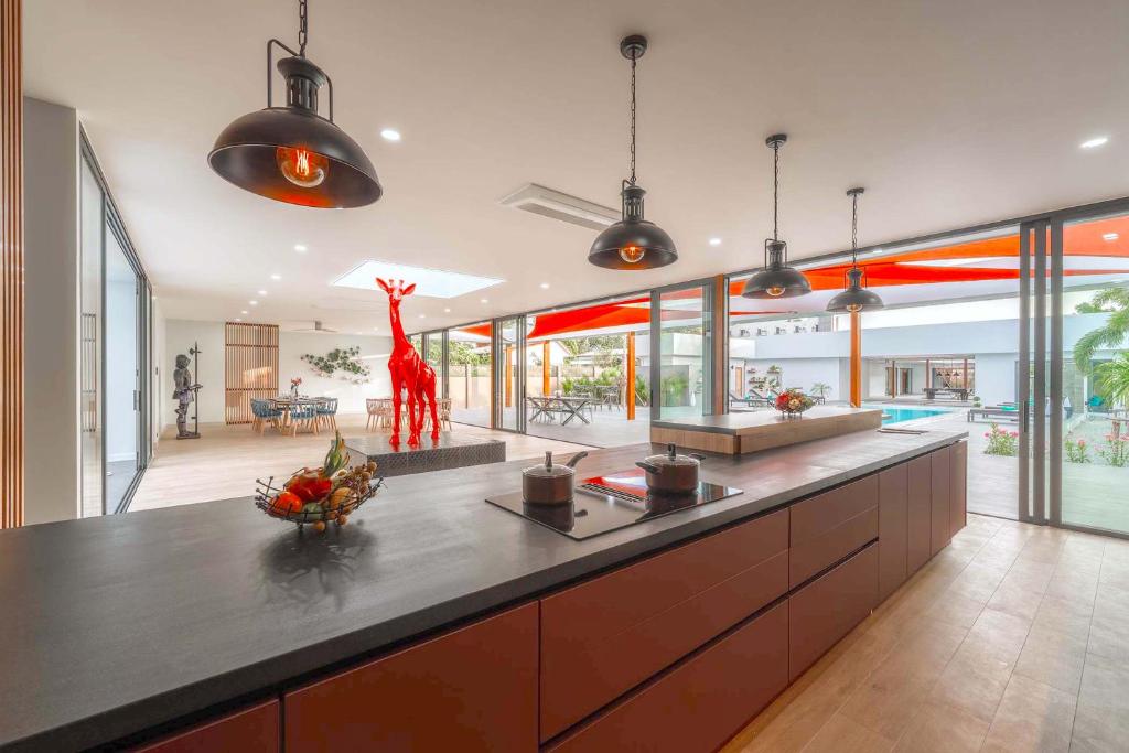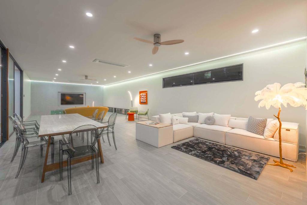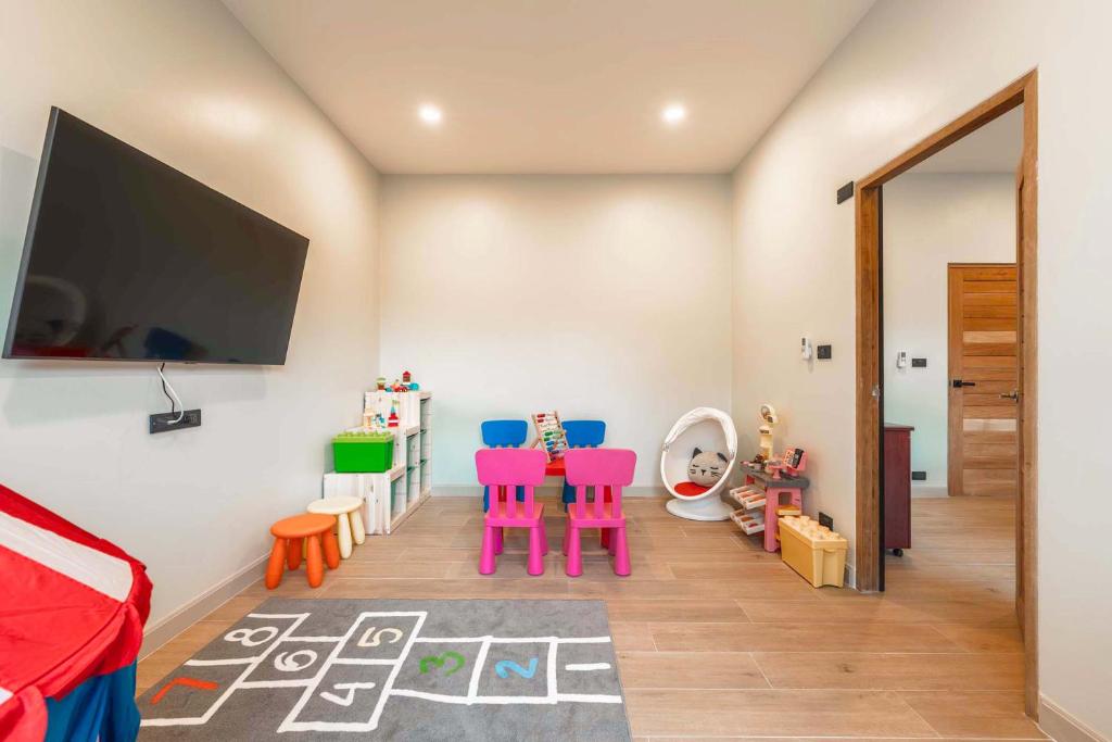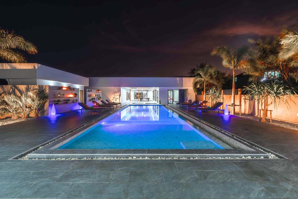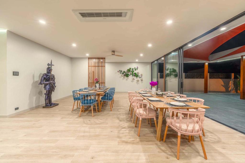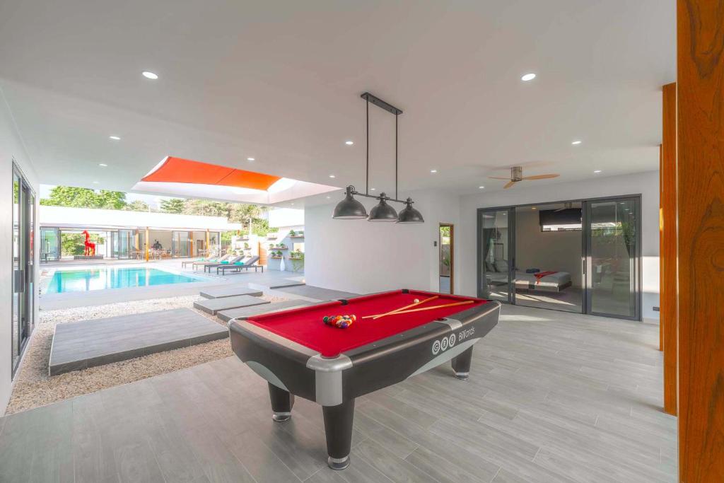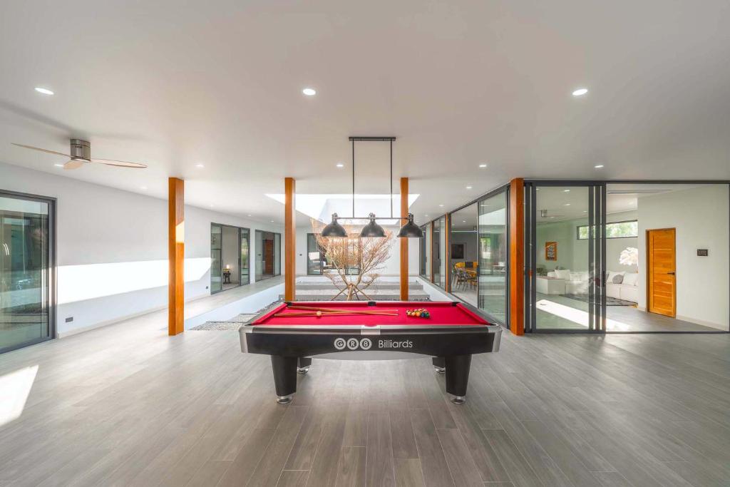 別墅經過精心設計,融合亞洲風情,結合多元元素,營造獨特和諧的氛圍。這個度假勝地有8間優雅的臥室,每間都有一張加大雙人床和獨立衛浴,讓您享受極致的舒適和放鬆。當您踏入室內時,宏偉的主廳以高雅的設計迎接您,提供寬敞的休閒空間,讓您放鬆身心,創造珍貴的時刻。我們的特殊電影和娛樂區域配有 85 吋的巨型智慧電視,可供史詩電影之夜觀看,還有有趣的撞球桌,可供友好競賽。廚房設備齊全,可供您烹飪冒險,並配有寬敞的戶外餐桌,可一起享用每一餐。