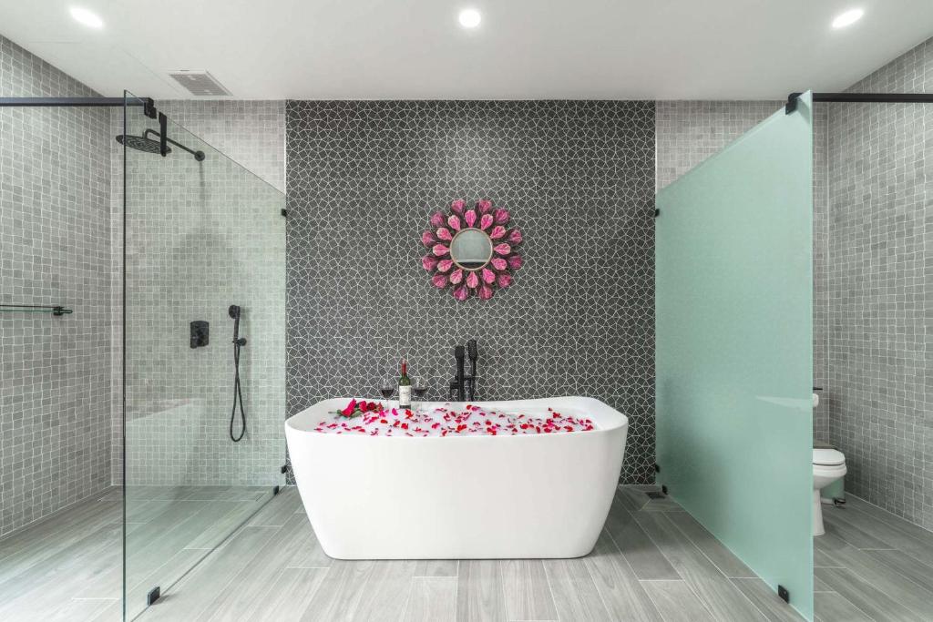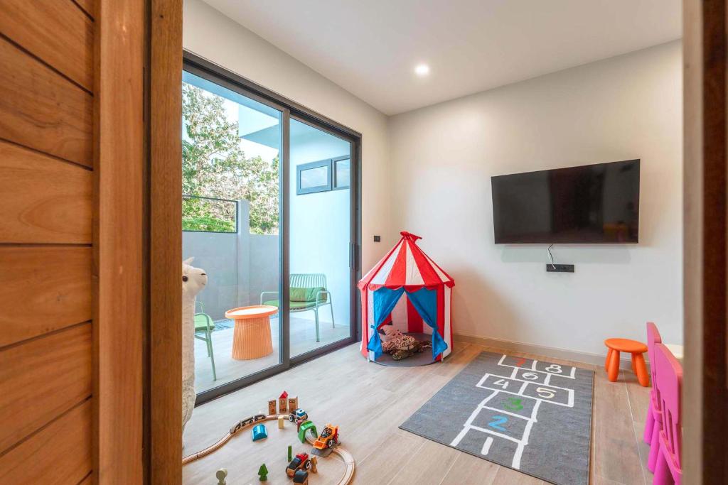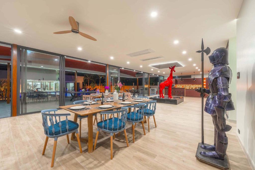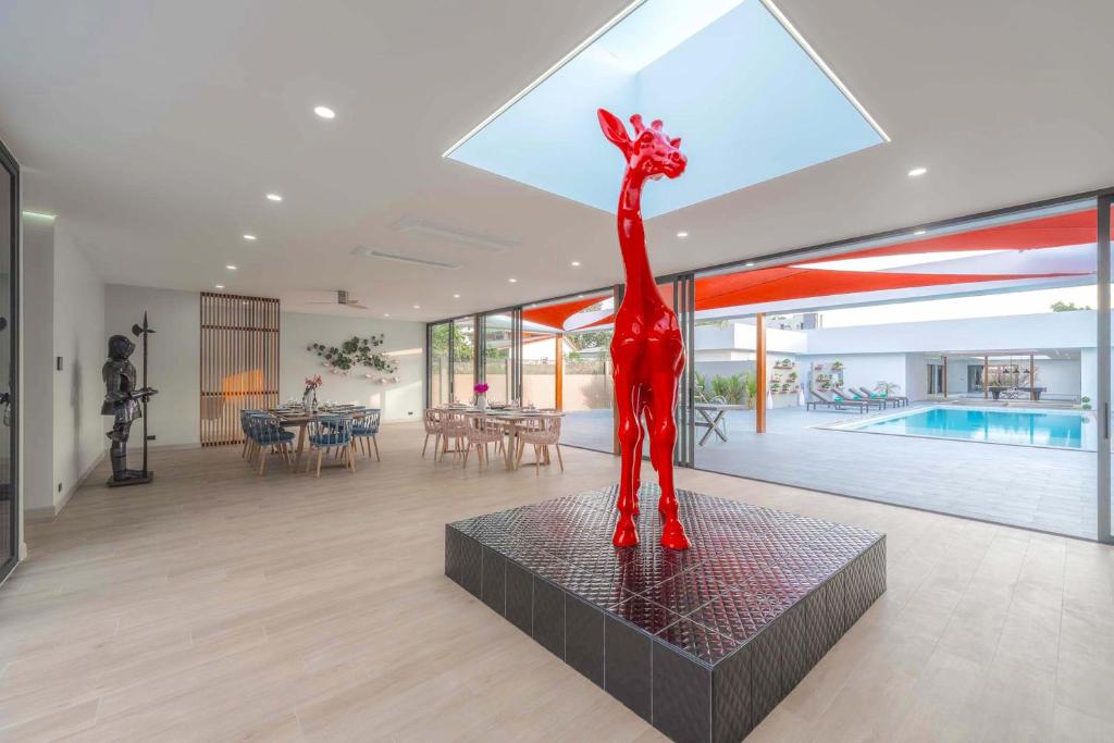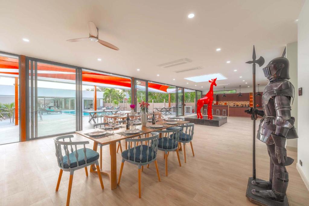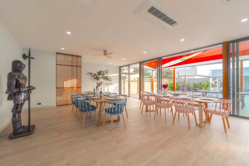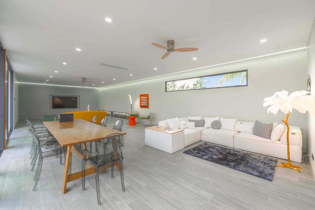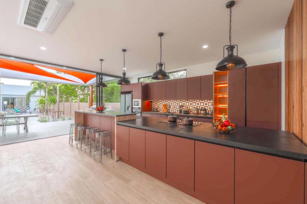 別墅經過精心設計,融合亞洲風情,結合多元元素,營造獨特和諧的氛圍。這個度假勝地有8間優雅的臥室,每間都有一張加大雙人床和獨立衛浴,讓您享受極致的舒適和放鬆。當您踏入室內時,宏偉的主廳以高雅的設計迎接您,提供寬敞的休閒空間,讓您放鬆身心,創造珍貴的時刻。我們的特殊電影和娛樂區域配有 85 吋的巨型智慧電視,可供史詩電影之夜觀看,還有有趣的撞球桌,可供友好競賽。廚房設備齊全,可供您烹飪冒險,並配有寬敞的戶外餐桌,可一起享用每一餐。