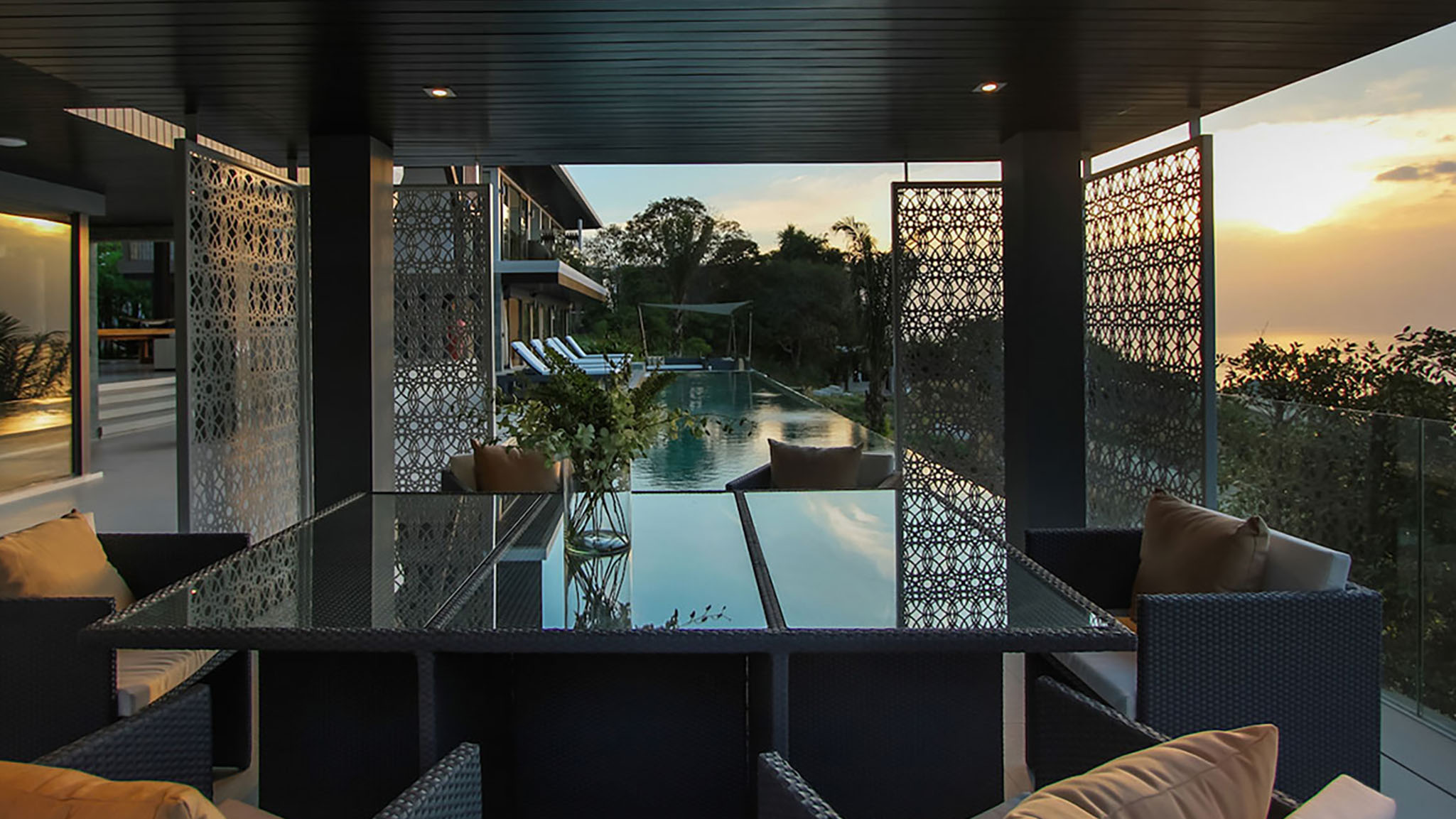 戶外區域設有20公尺的無邊泳池,讓您能放鬆並享受假期時光。泳池邊有一堆舒適的椅子和沙發,你可以坐下來放鬆,同時欣賞完美的夕陽。