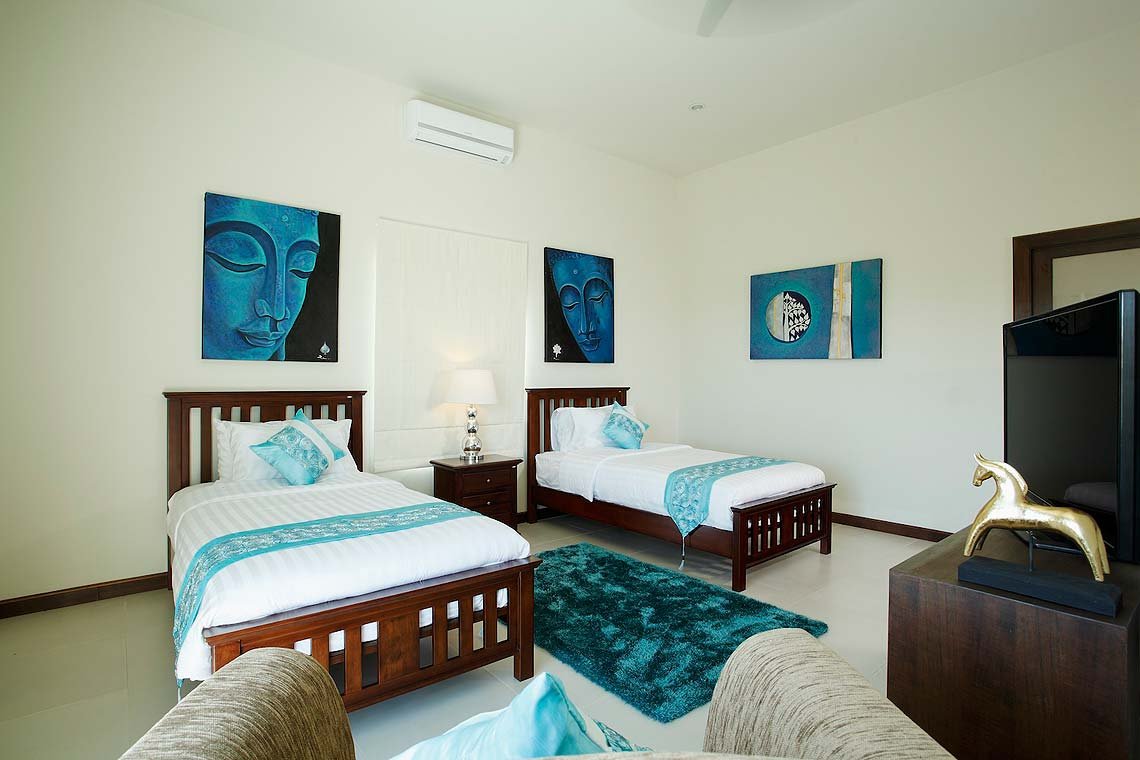 別墅內九間華麗的臥室分布在三層樓上。提供兩間主臥室套房,配備特大床、私人陽台及套房浴室。另外兩間臥室配有一張特大號床和舒適的床單。其中四間臥室提供雙人床,為雙人合成,最後一間則提供上下舖,方便有小孩的家庭舒適住宿。極簡風格的裝潢和白色牆面色調,讓房間看起來更寬敞優雅。