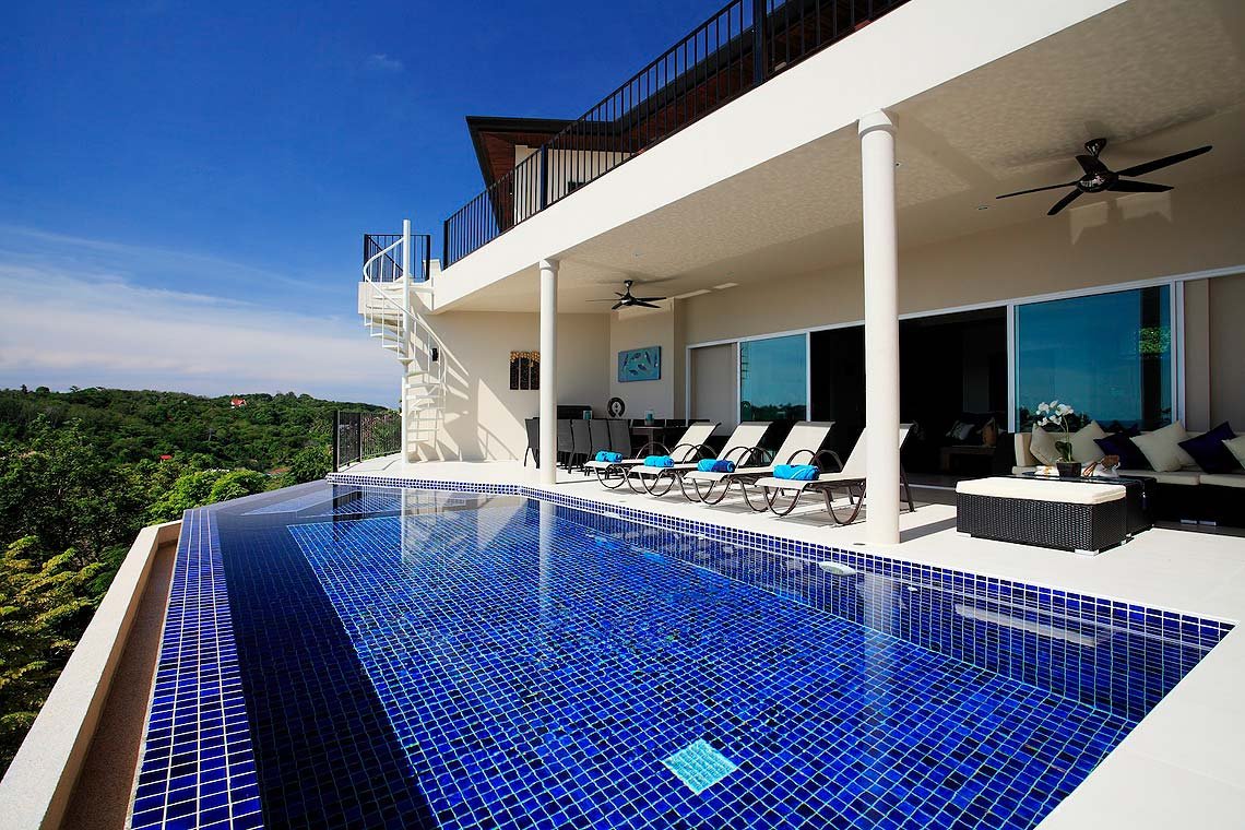 臥室旁設有專用的陽台與露臺,提供舒適的座位安排,讓您能欣賞到無可挑剔的周遭景觀。此外,還設有可容納16人的開放式用餐區,您可以在享用美味佳餚的同時,欣賞周遭寧靜的景色。別墅二樓設有閃亮的無邊際泳池,俯瞰壯麗的海岸線。你一定很想泡在按摩浴缸裡,享受假期中最美好的時刻。同時也設有舒適的休息室,配有舒適的沙發、靠墊和咖啡桌,為你的休閒增添樂趣。