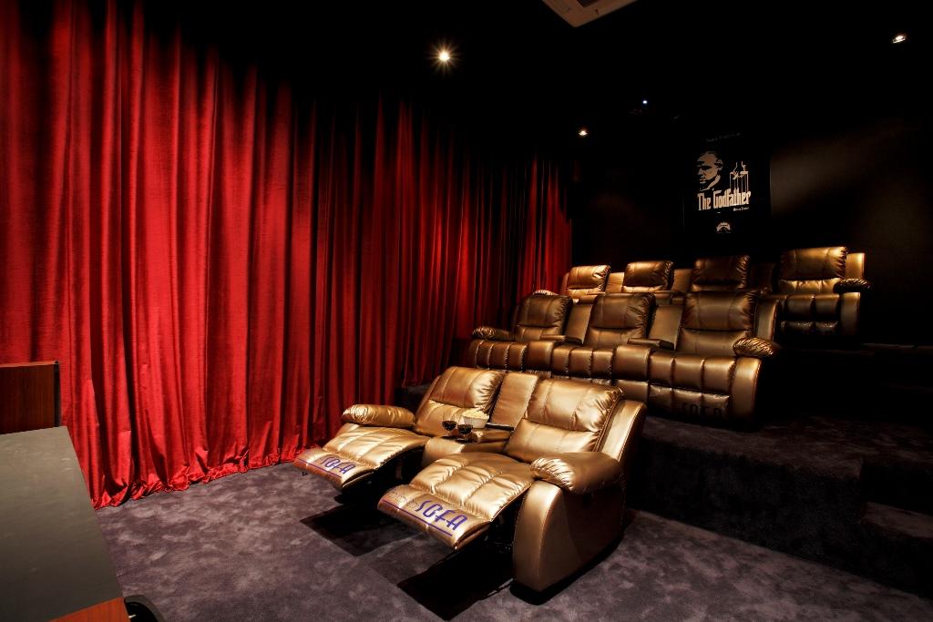 ● 家庭劇院,配備投影機、THX 音效及 9 張電動控制座椅,配備硬碟,內藏數百部藍光電影、影集等,筆電連接及配備遊戲的 PlayStation 5。