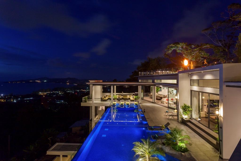 超越了所有別墅。9間臥室、10間浴室、42公尺的無限泳池(含按摩浴缸、保齡球、健身房、家庭劇院、撞球檯、乒乓球、跳水泳池、無線網絡、9名職員等)。 其驚豔的現代設計充分利用了超過3,000平方公尺的樓面空間,分布在四層樓內,經過精心規劃。住宿包含不少於9間臥室,全部擁有壯麗海景、套房浴室、空調及多項豪華裝潢與設施。為了讓您完全舒適且能獲得貼心照顧,這座私人擁有的尊貴地址由 Villa 敬業的員工以最高標準管理與維護。為了完全安心,別墅配備了專業的監視攝影機和安全警報系統。以料理為核心,Villa 提供超現代化、設備齊全的西式廚房與泰式廚房,兼顧兩者優點。用餐時尚,設有可容納16人的大型室內餐桌,屋頂露台則設有酒吧、花園、烤肉區及額外戶外座位,同樣可容納16人。對於喜愛水的玩家,這裡有42公尺的淡水無限泳池,內建按摩浴缸,6張浮動日光浴床和整合式兒童泳池,屋頂露台上則有帶按摩浴缸的深水池和瀑布。